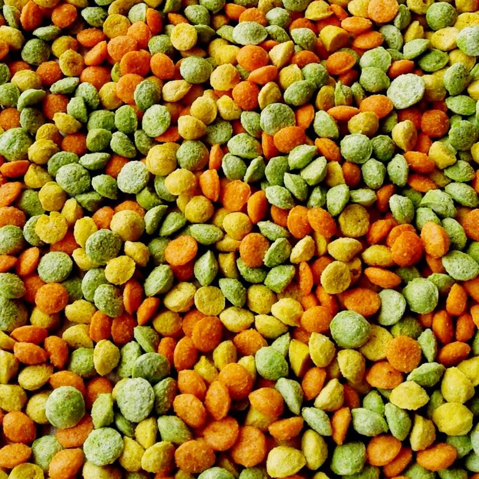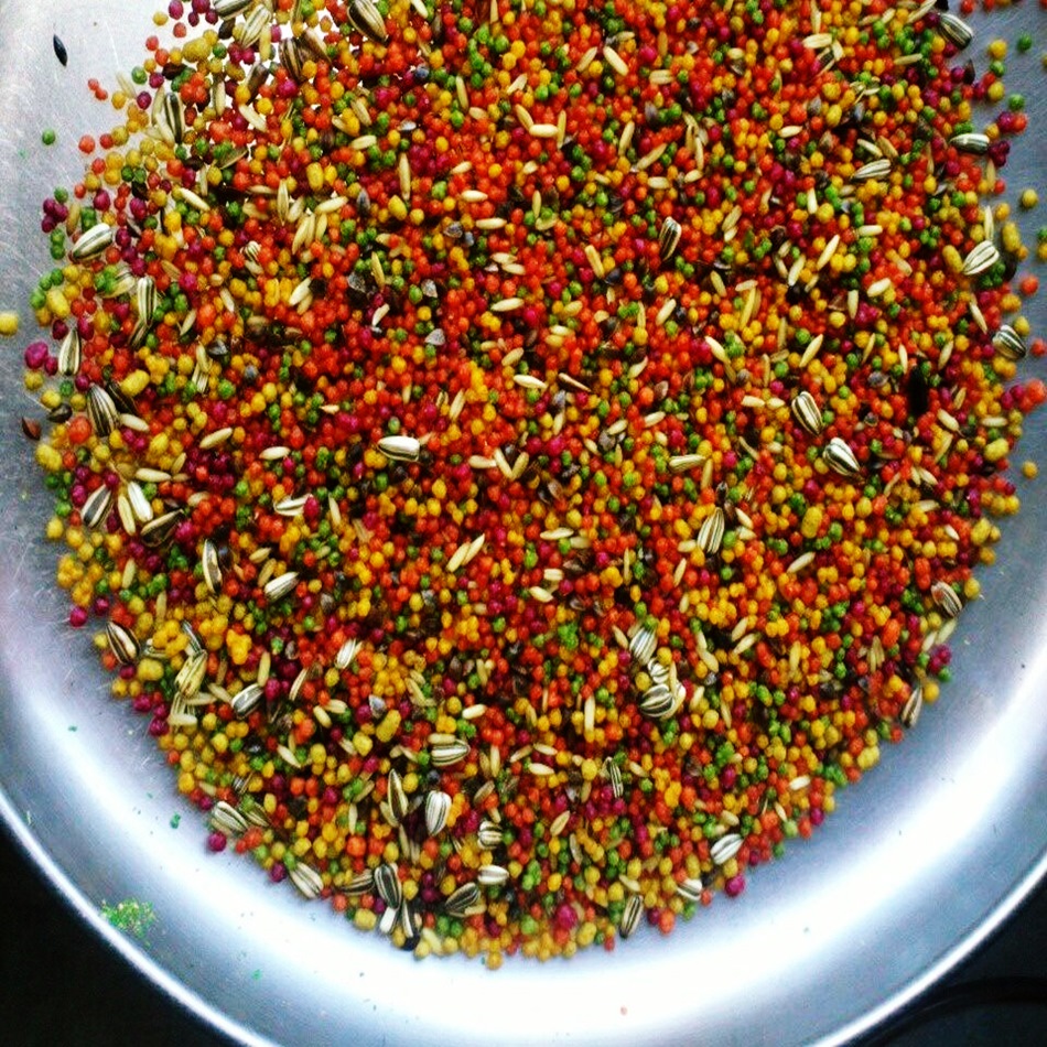 Mistura de sementes e ração extruzada